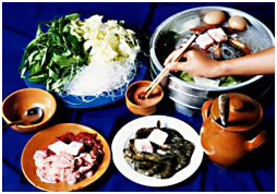 Sauté beef lightly in oil. Slice into small pieces and put into a large bowl. Add lemon or lime juice and combine. Add fish sauce and ground rice and mix. Season with salt and pepper. Just before serving, add mint, garlic, cilantro, green onions and chilies.